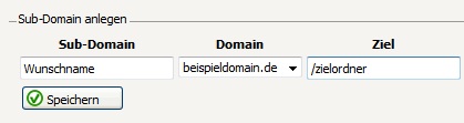 Geben Sie nun den gewünschten Namen und das Weiterleitungsziel der Subdomain ein.