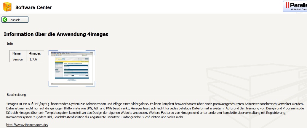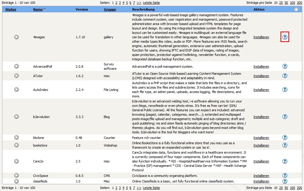 Das Application Pack enthält 100 vorkonfigurierte Softwarepakete und Skripte. Diese können ohne Fachkenntnisse mit wenigen Mausklicks installiert werden.Alle gängigen Programme wie z.B. Counter, Gästebücher, Webshops, Wikis, Foren, CMS, Formmail, Suchmaschine, Webkalender, usw. sind enthalten. Die Softwarepakete und Skripte sind bereits in Confixx integriert und vorkonfiguriert.Um ein Skript zu installieren, wählen Sie unter Confixx den Menüpunkt "Software-Center".