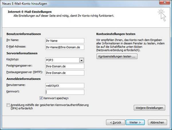 POP3: Ihre-Domain.deSMTP: Ihre Domain.de